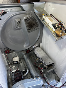 This photo shows a modern top-load washing machine inspected during a service visit…
